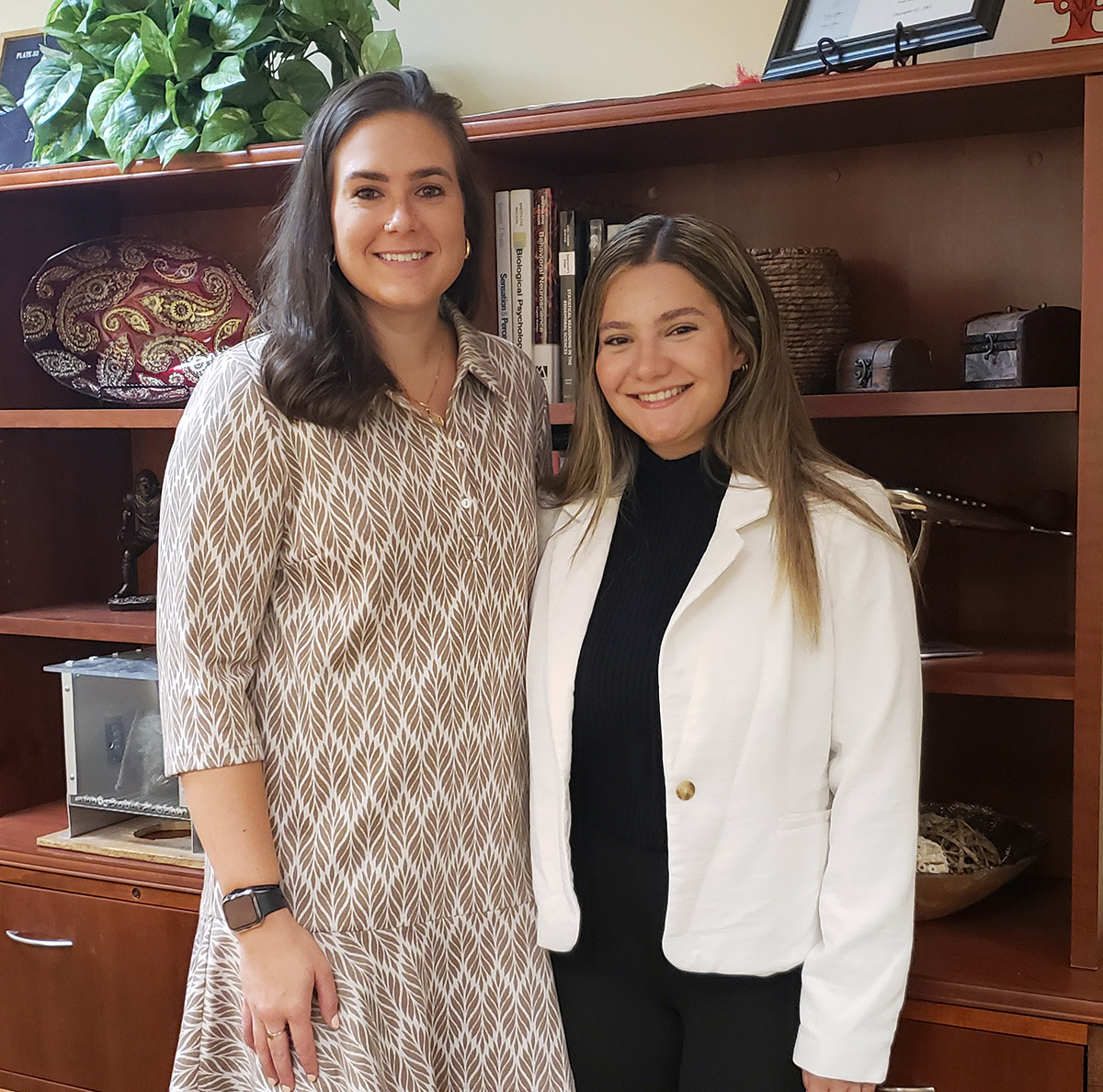 Fabiola Torres (right) and Dr. Haley Sherman were among six student-faculty teams selected for the 2025 Blazer Summer Research Institute at Valdosta State University. They spent the summer researching the relationship between physical pain and psychological challenges in military-affiliated individuals, as well as questioning the role mindset plays in overall well-being.