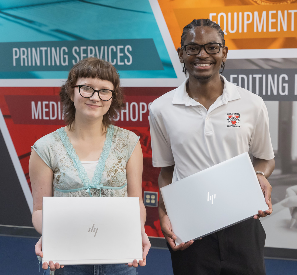 Audrianna Harpe, an interior design major from Sylvester, and Jaiquan Littleton, an accounting major from Hazlehurst, were among the 50 Valdosta State University students who received a laptop from AT&T and the University System of Georgia Foundation. |