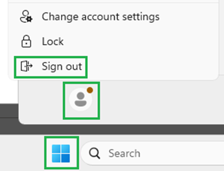 - Finally, exit the virtual lab itself by clicking the Windows logo > your Profile Name > Sign Out.